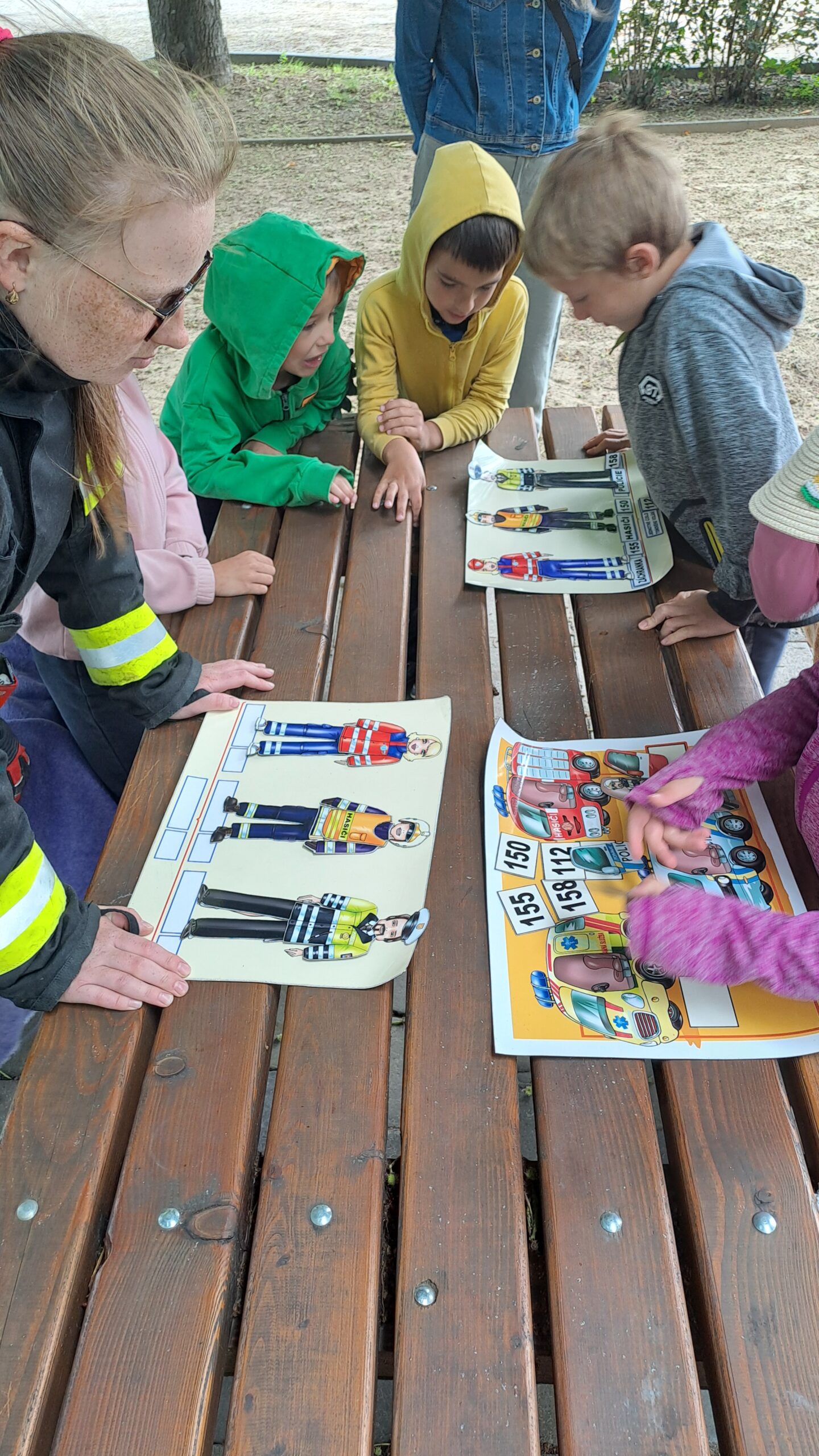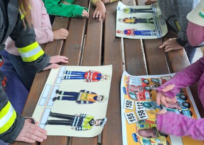 Děti si mohly zblízka prohlédnout výbavu hasiče, jeho uniformu, ale také si zkusily magnetické doplňovačky nebo poznávaly čísla tísňových linek. Největší údiv vzbudily hasičovy boty. Podle slov pana hasiče jsou tak pevné, že když na ně spadne cihla, tak to vůbec nebolí.