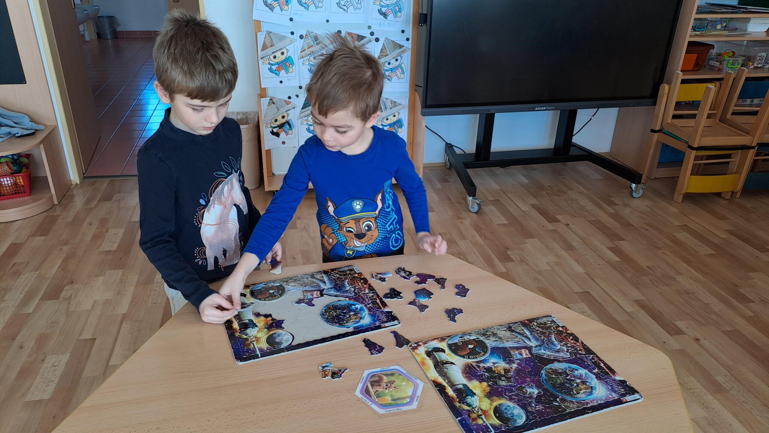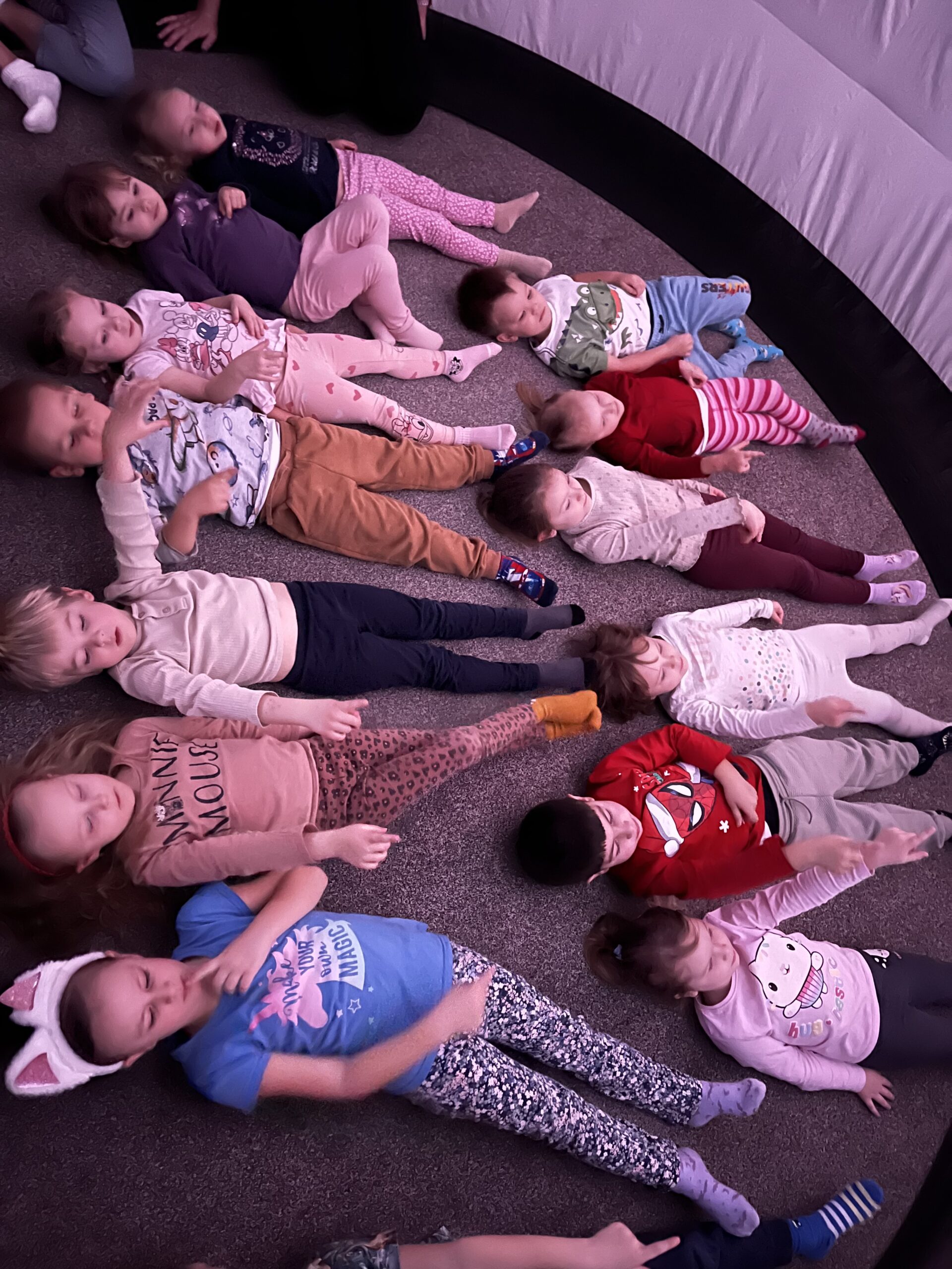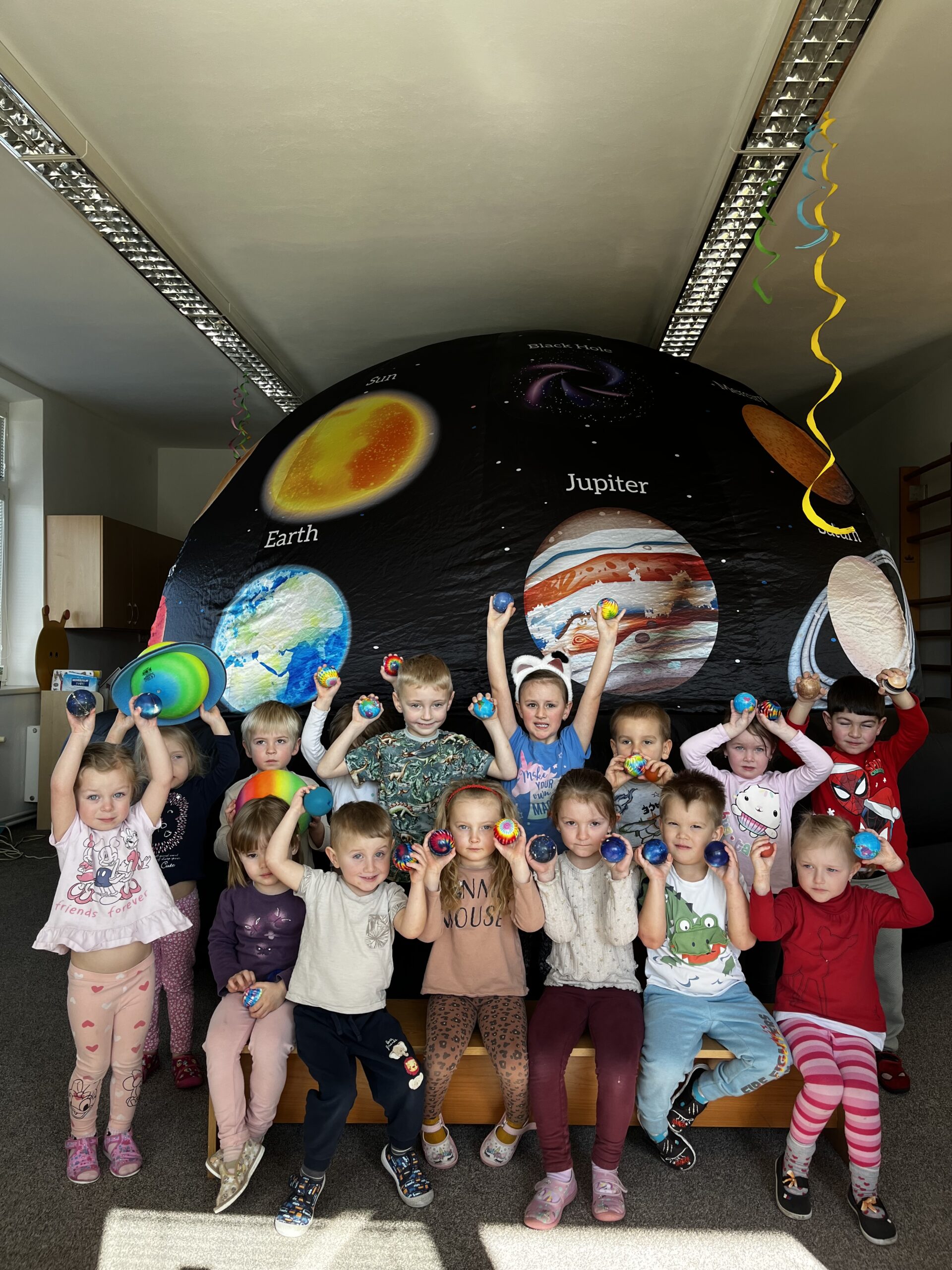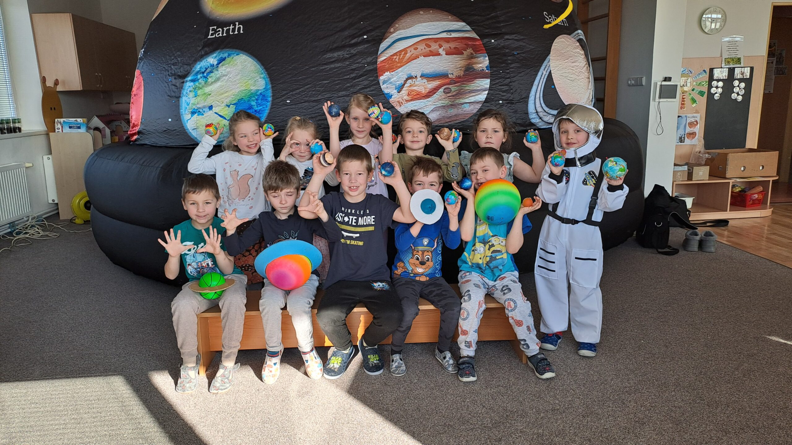 Ve čtvrtek 5. března se ve třídě Veverek objevilo něco opravdu nečekaného. Prostor herny zaplnil obrovský zážitkový stan, který sahal téměř až ke stropu a proměnil třídu v malé vesmírné planetárium.