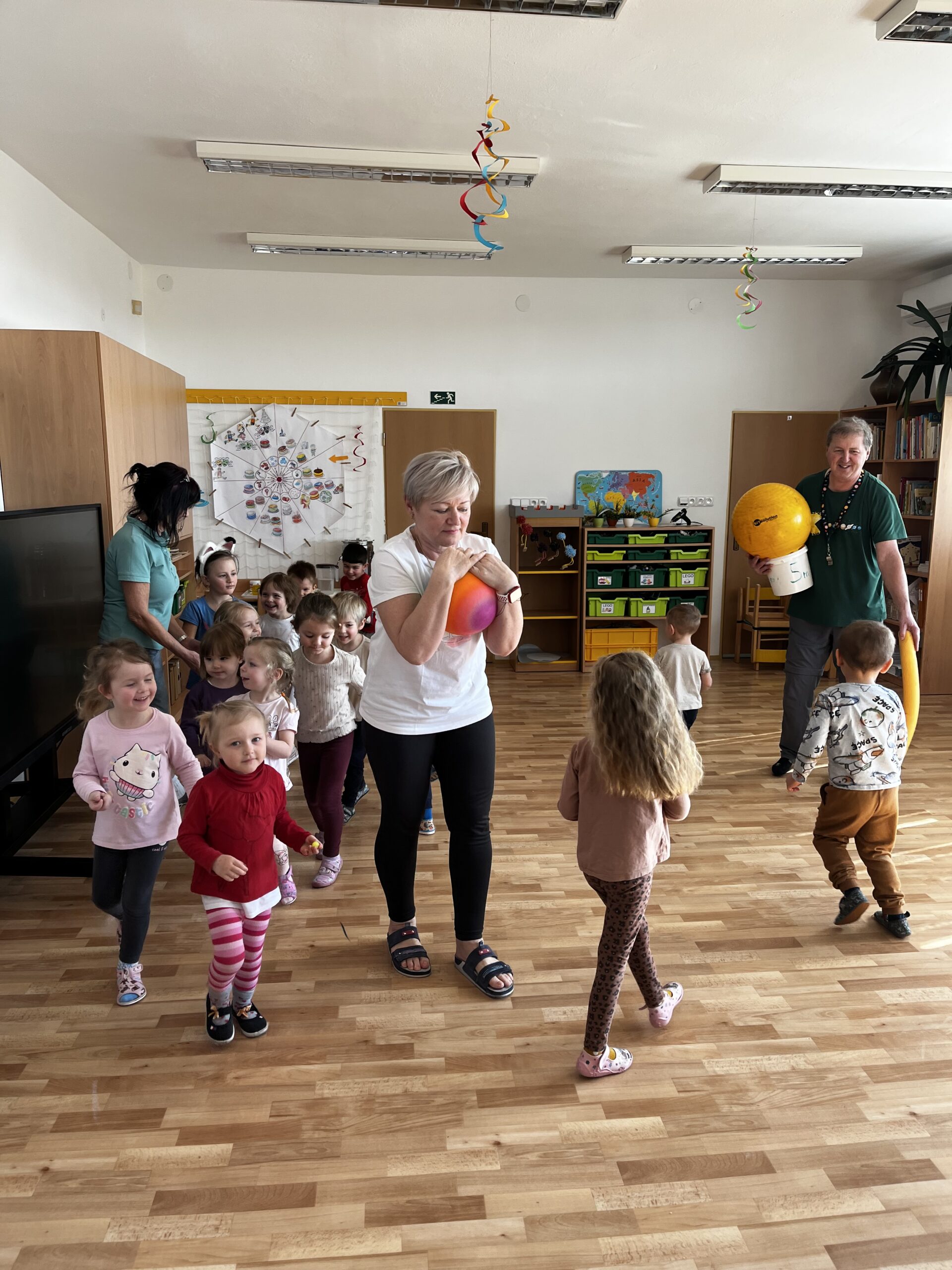 Nové poznatky si děti vyzkoušely i v pohybových aktivitách. Pomocí různých míčů simulovaly pohyb planet a dalších těles ve vesmíru a na vlastní kůži si tak vyzkoušely, jak vesmír funguje.